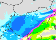 Hétfőn este melegfront érkezik, ami főként északra és keletre hoz csapadékot, zömében havat, de előfordul majd vegyes halmazállapotú csapadék is.