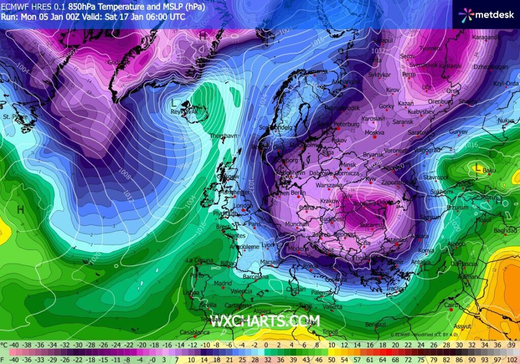 Hétfőn este melegfront érkezik, ami főként északra és keletre hoz csapadékot, zömében havat, de előfordul majd vegyes halmazállapotú csapadék is.