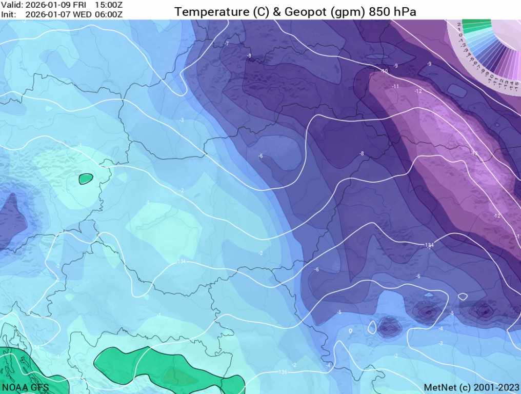 Hétfőn este melegfront érkezik, ami főként északra és keletre hoz csapadékot, zömében havat, de előfordul majd vegyes halmazállapotú csapadék is.