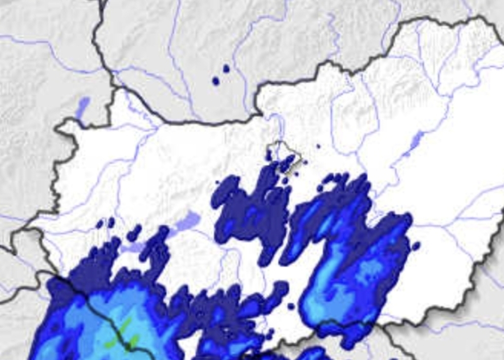 Hétfőn este melegfront érkezik, ami főként északra és keletre hoz csapadékot, zömében havat, de előfordul majd vegyes halmazállapotú csapadék is.