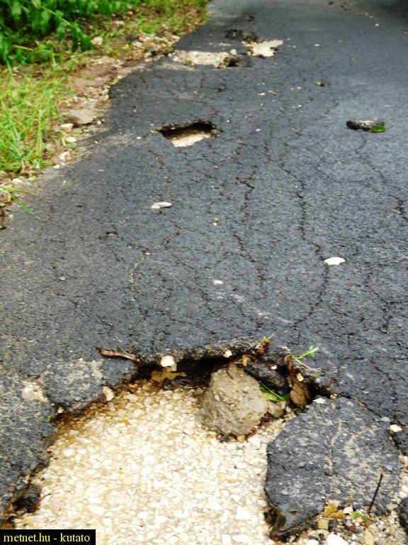 | Leírás: Felhõszakadás után; alámosott út | |