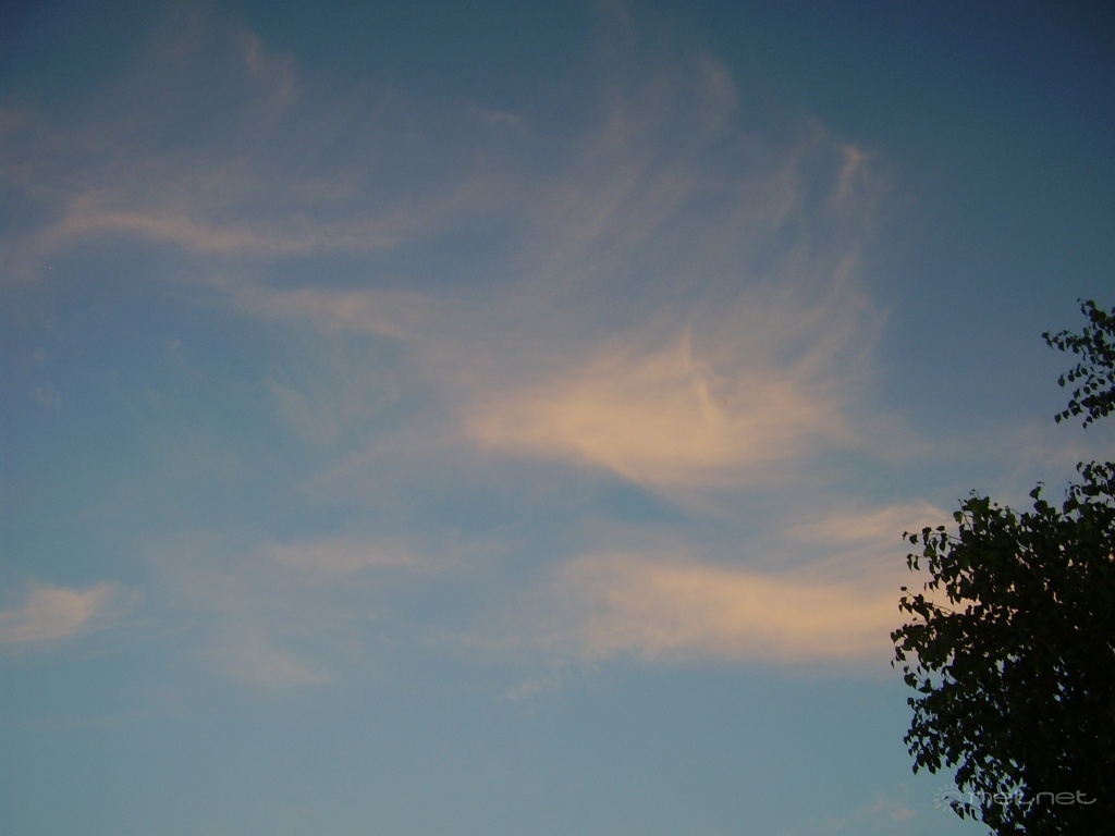 | Leírás: Cirrusok a lemenõ nap fényével megvilágítva. | |
