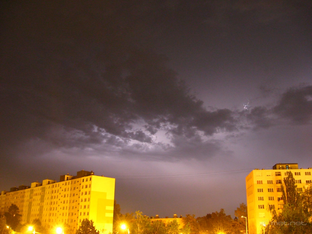 Leírás: Az éjszakai, hajnali villámok fénye, fõleg a várostól DK-re.