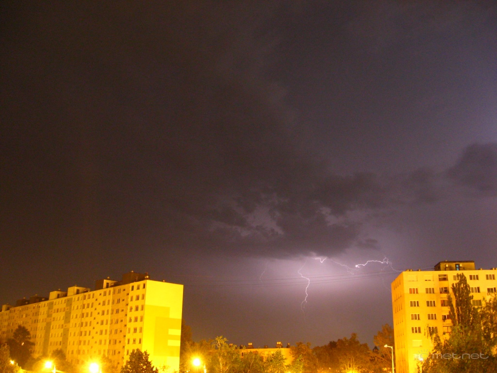 Leírás: Az éjszakai, hajnali villámok fénye, fõleg a várostól DK-re.