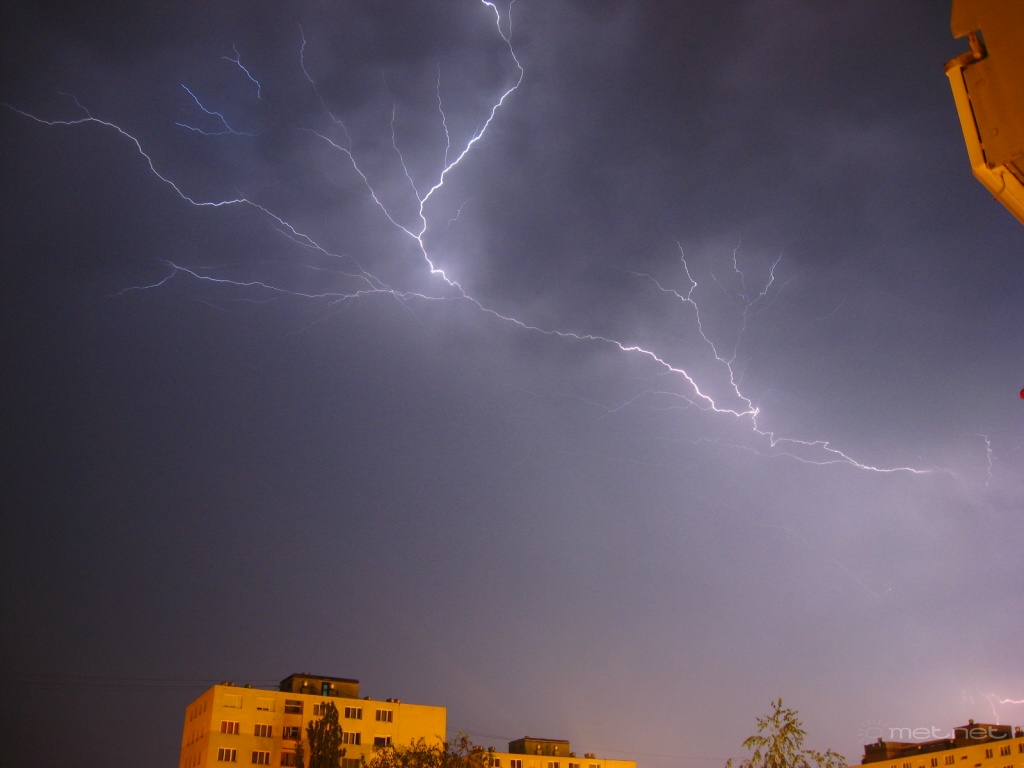 Leírás: Az éjszakai, hajnali szegedi vihar villámai.
