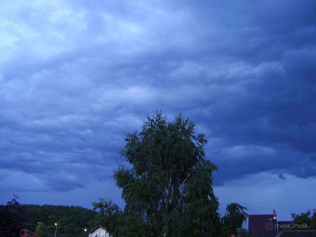 | Leírás: Kelet felé távozó zápor sötétedéskor. Itt közepes intenzitású zápor volt belõle. | |