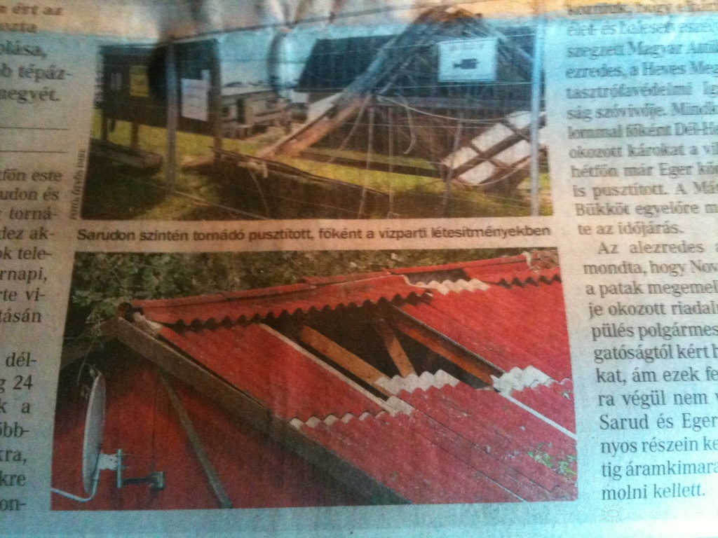 Leírás: Cikkdokumentáció a sarudi tornádóról. Forrás: Heves Megyei Hírlap. Felhasználás célja: tudományos dokumentációs cél