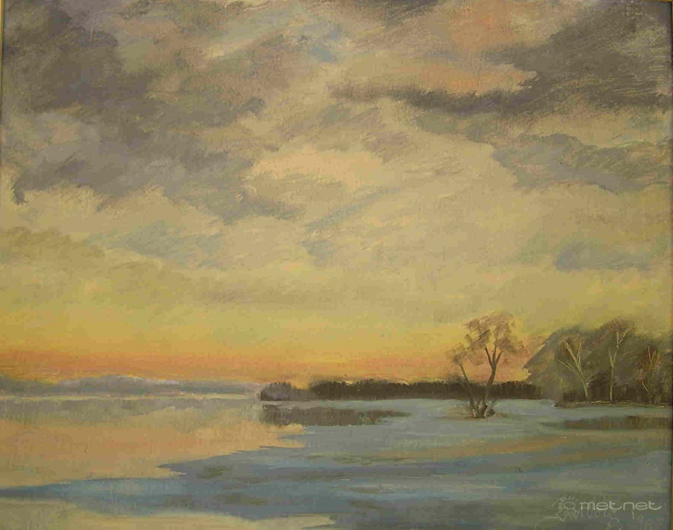 Leírás: Jeges ár a Tiszán (olaj, vászon)