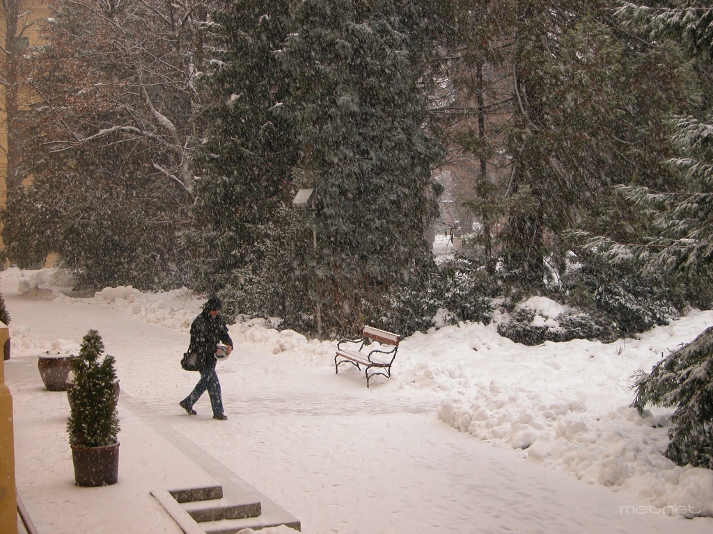 | Leírás: Sopron, az Egyetem fõbejáratánál Egy óra alatt 2-3cm friss hó hullott. |