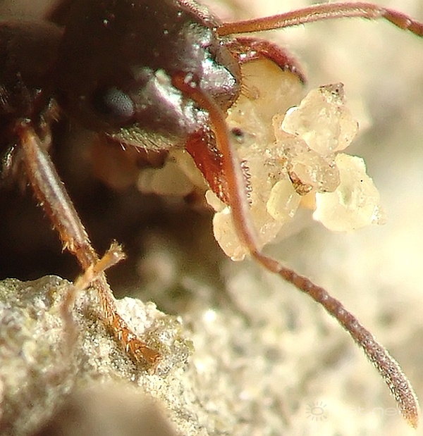 | Leírás: Nagytakarítás hangyáéknál :) Szorgalmasan cipelték ki a bolyból a "kõhalmokat" némelyiket alaposan feltornyozva. | |