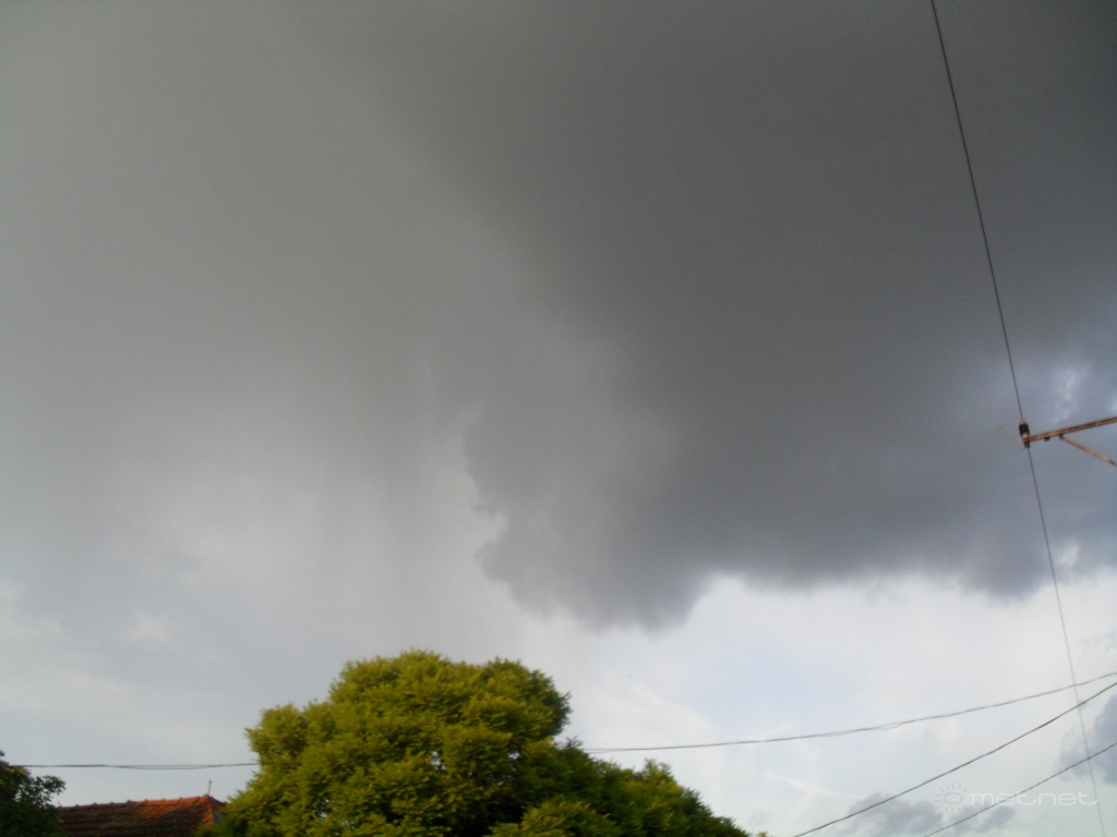 Leírás: Intenzív záporos zivatar furcsa felhõképzõdménnyel.
