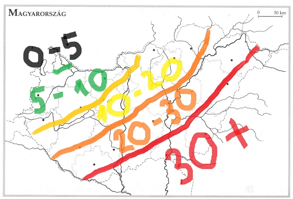 | Leírás: Hétfõ reggelre várt hóvastagságok cm-ben | |