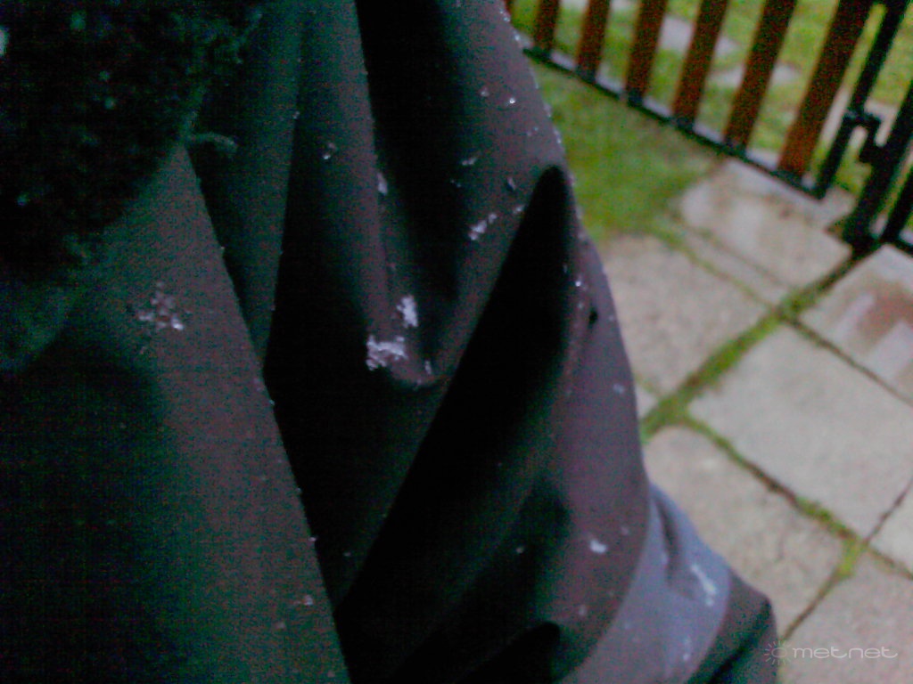 Leírás: utolsó hó{ápr.17.}Csak a ruhán megmaradó kései zirci tavaszi hóesés +1/2°c-ban,(o5,30h-06,30h-ig 80-100%hó.