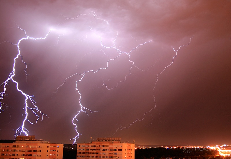 Leírás: Éjfél körüli villámparádé