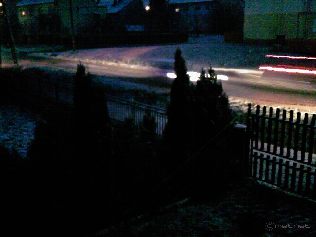 Leírás: Zirc Már nem meglepi-hólepi,elsõ téli hóréteg.A két közlekedõ autó szemközti fényi..találkoznak.Fél cm hólepi.