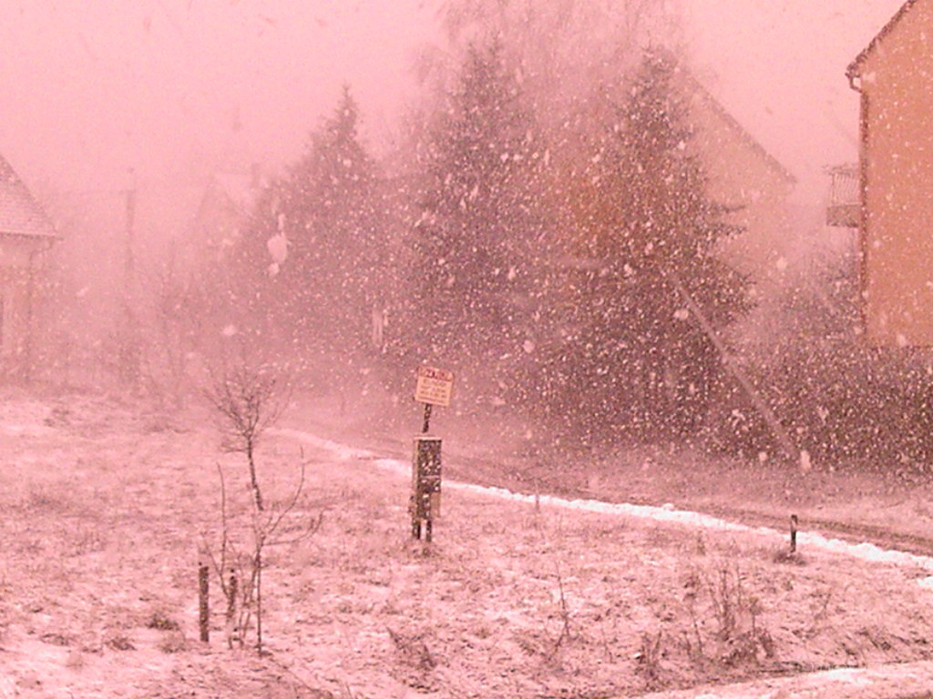 Leírás: Leírás: Zirci fehér Húsvét!Hõérzet -11°c idõnként,hõmérséklet: -0,5°c és 2-5cm hótakaró!Téli Szent Húsvéti Ünnepnapon hó,fagy napközben élénk,erõs szél kíséretében lehûlés,intenzív hózáporok váltották a 31mm-i esõt.! >A hófüggönyben a behavazott fenyõt is alig látni