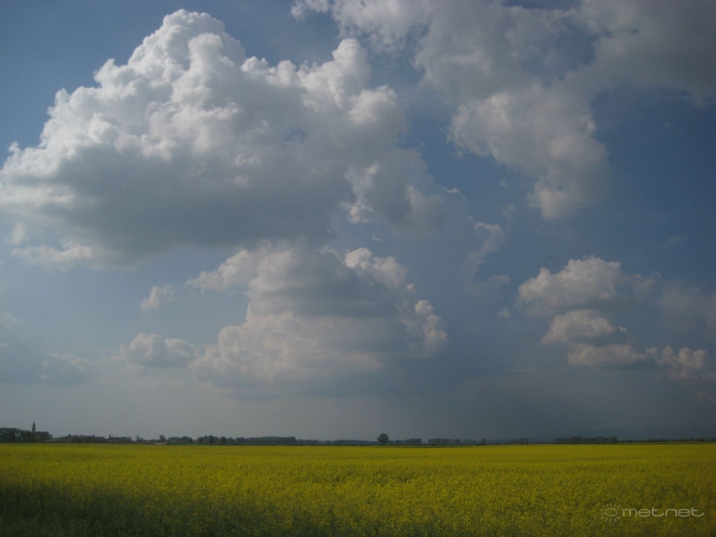 | Leírás: Gomolyfelhõk, repcetábla, távolban a Bükk irányában csapadéksáv | |