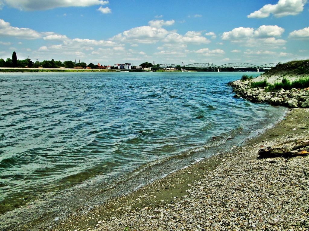 | Leírás: A Duna partja távolban egy híddal | |