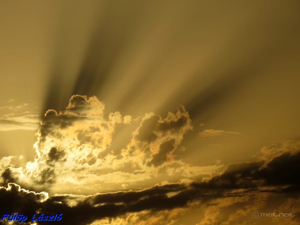| Leírás: Éles kontrasztú Tyndall-sugarak naplementekor | |