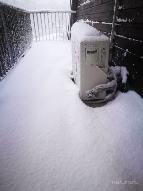 Leírás: Normafa, Eötvös út. Hóvastagság 15 cm körül, a meleg miatt nem nagyon gyarapszik, bár reggel óta újra folyamatosan havazik