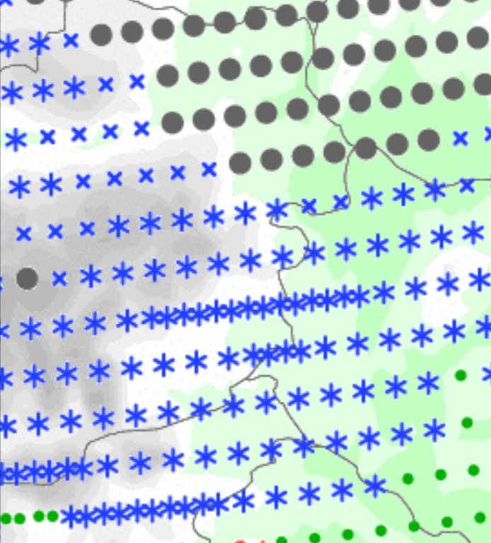 Hétfőn este melegfront érkezik, ami főként északra és keletre hoz csapadékot, zömében havat, de előfordul majd vegyes halmazállapotú csapadék is.