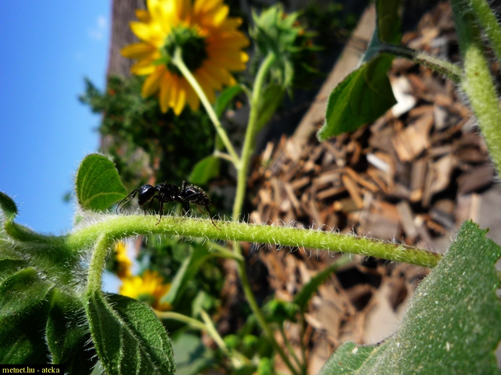 | Leírás: Óriáshangya a napraforgó ágán. | |