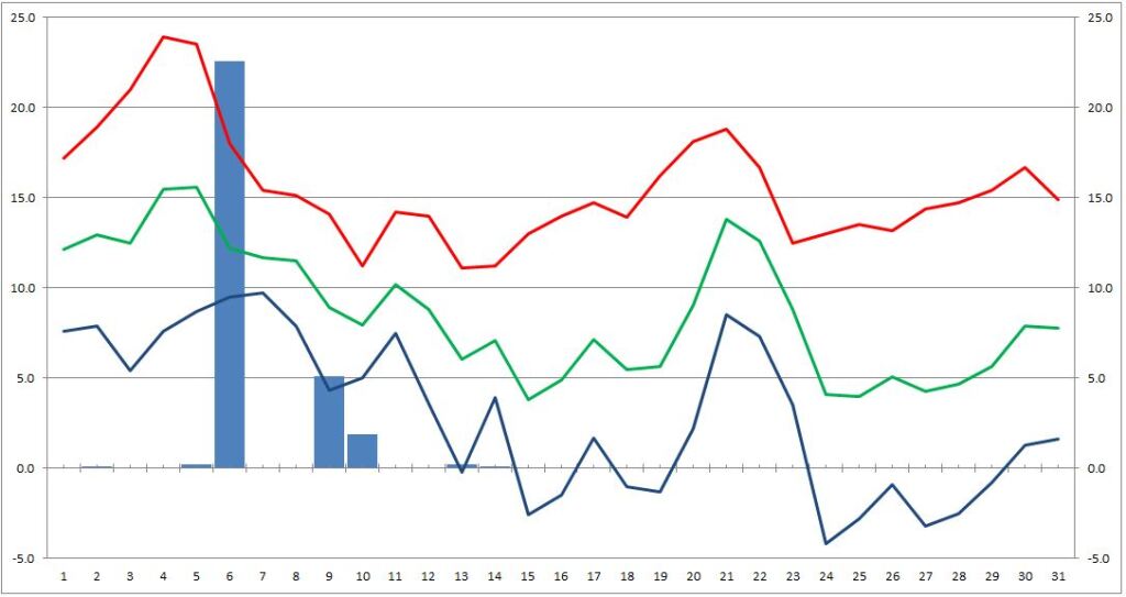 Hétfőn este melegfront érkezik, ami főként északra és keletre hoz csapadékot, zömében havat, de előfordul majd vegyes halmazállapotú csapadék is.