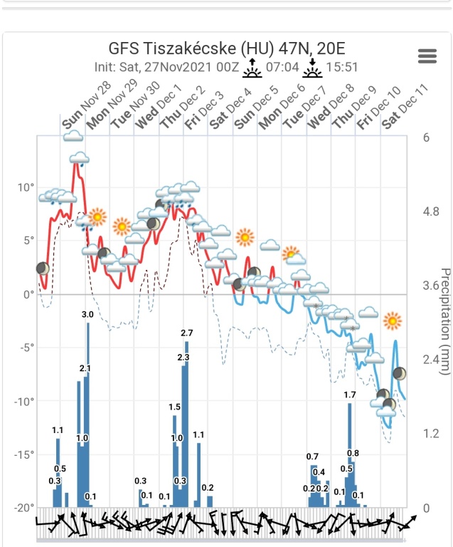 Hétfőn este melegfront érkezik, ami főként északra és keletre hoz csapadékot, zömében havat, de előfordul majd vegyes halmazállapotú csapadék is.