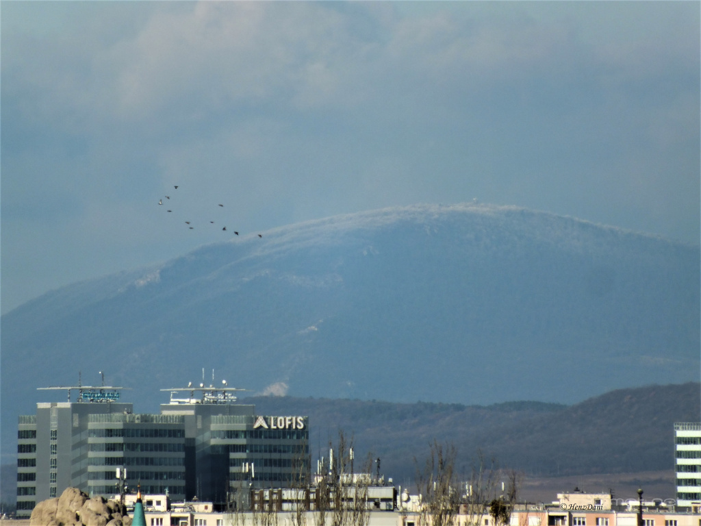 Leírás: A zúzmarás Pilis-tető Zuglóból.