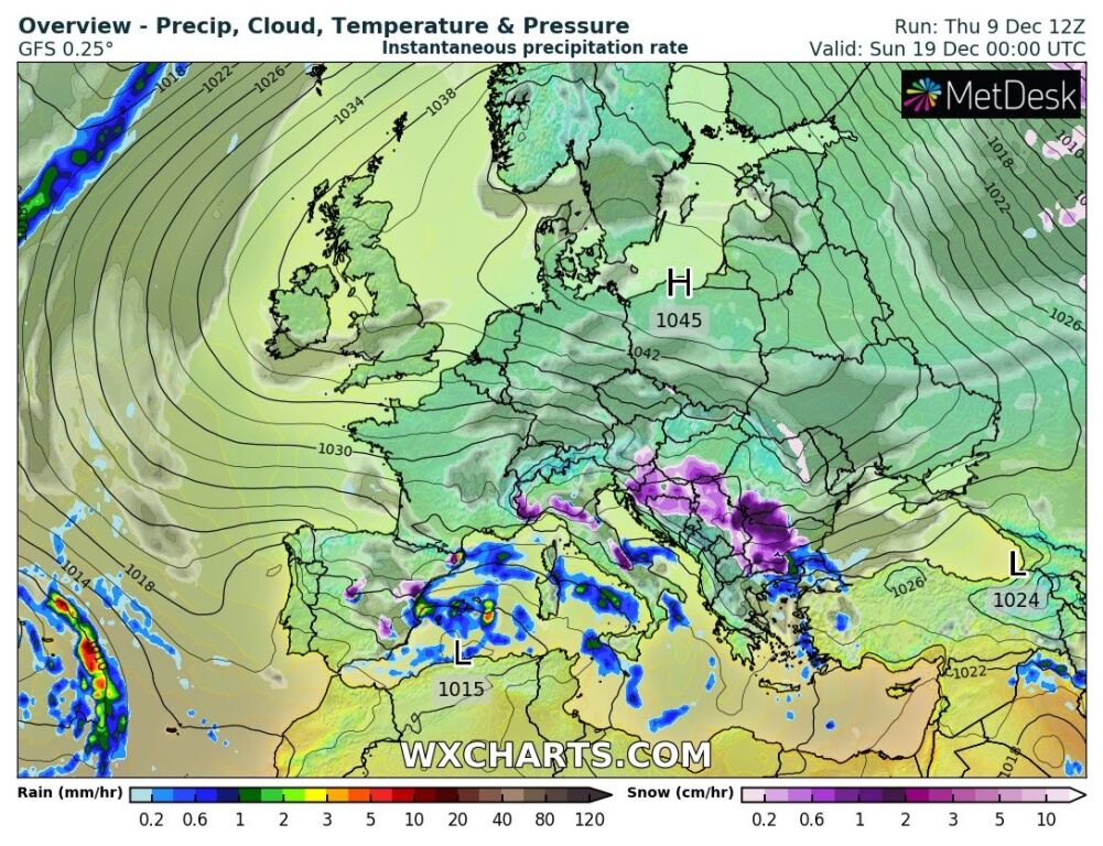 Hétfőn este melegfront érkezik, ami főként északra és keletre hoz csapadékot, zömében havat, de előfordul majd vegyes halmazállapotú csapadék is.