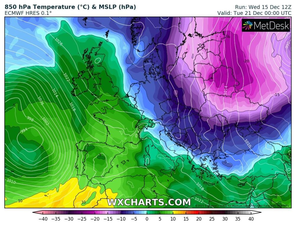 Hétfőn este melegfront érkezik, ami főként északra és keletre hoz csapadékot, zömében havat, de előfordul majd vegyes halmazállapotú csapadék is.