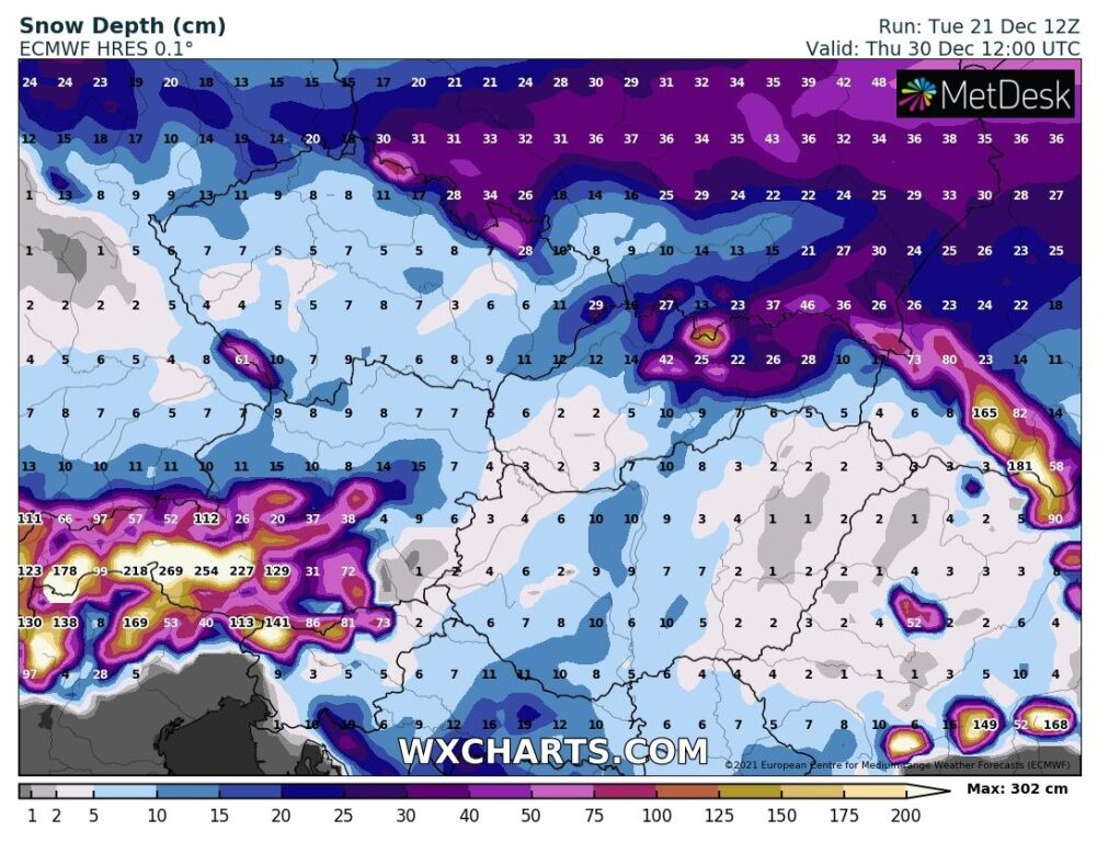 Hétfőn este melegfront érkezik, ami főként északra és keletre hoz csapadékot, zömében havat, de előfordul majd vegyes halmazállapotú csapadék is.
