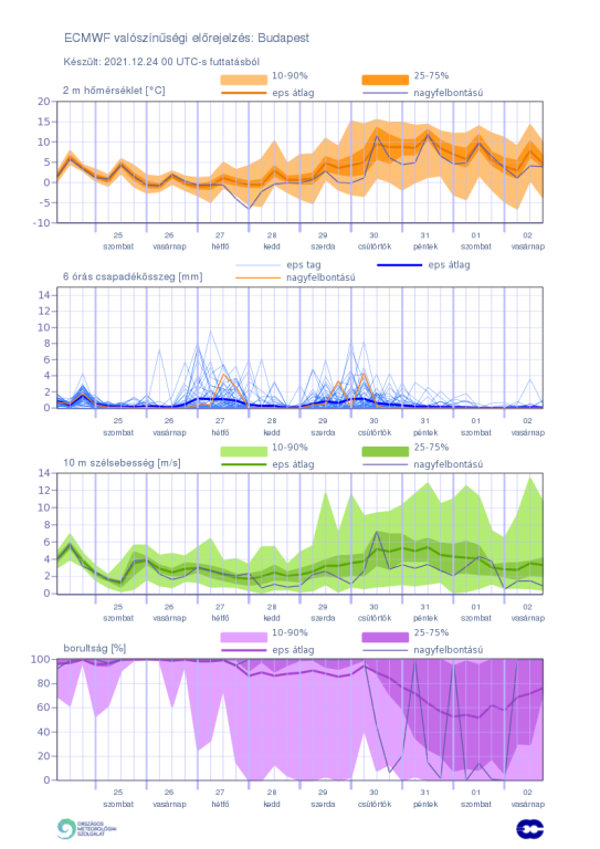 Hétfőn este melegfront érkezik, ami főként északra és keletre hoz csapadékot, zömében havat, de előfordul majd vegyes halmazállapotú csapadék is.