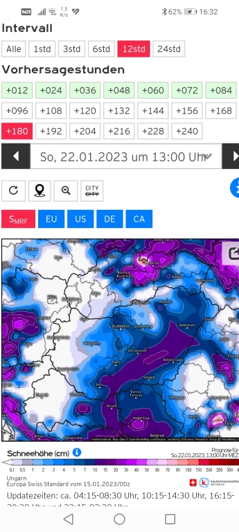 Hétfőn este melegfront érkezik, ami főként északra és keletre hoz csapadékot, zömében havat, de előfordul majd vegyes halmazállapotú csapadék is.