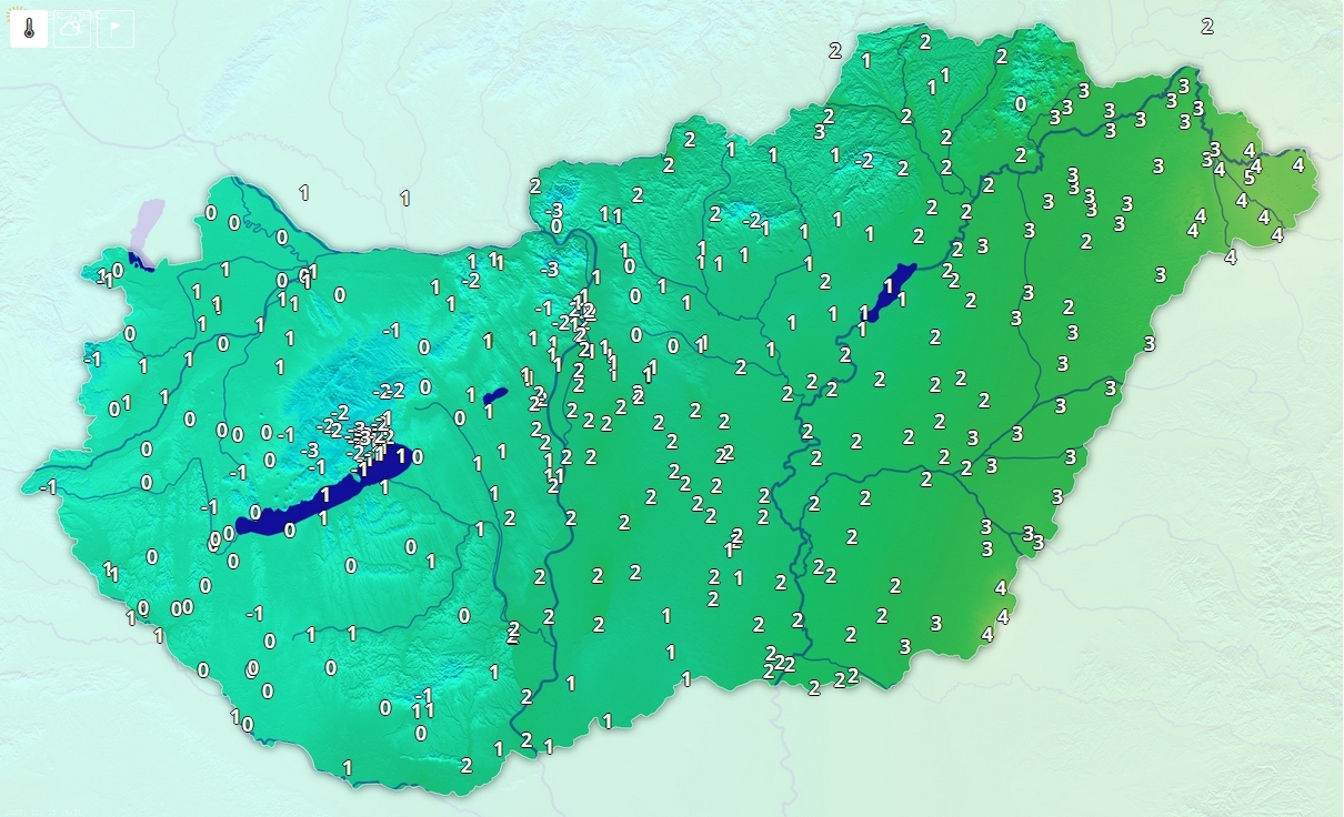 Nyugaton jellemzően 0 fok körül, másutt inkább 2 és 5 fok között a hőmérséklet.